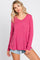 A solid lightweight ribbed knit long sleeve top with a front pocket detail.