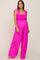 Fuchsia Satin Smocked Square Neck Shoulder Tie Maternity Jumpsuit