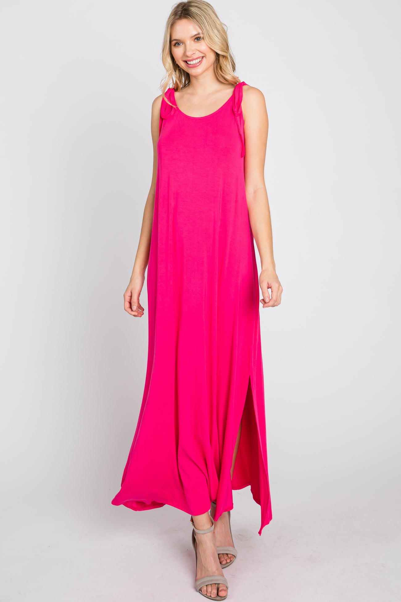 Fuchsia Tie Strap Side Slit Maxi Dress