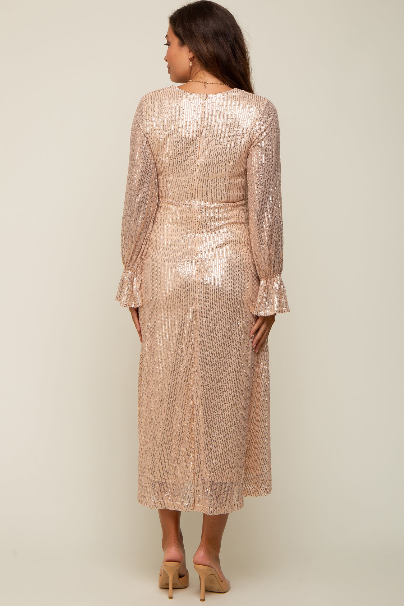 Gold Sequin Long Sleeve Wrap Maternity Maxi Dress