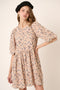 Gray Puff Elbow Sleeve Flare Baby Doll Dress