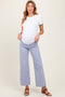 A corduroy maternity shacket featuring a button front, a collar neckline, long sleeves and a raw edge hem.