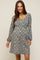 A floral maternity dress with a squared neckline, long sleeves, and an a-line skirt. The front of the top is lined.