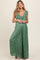 Green Floral Ruffle Accent Wide Leg Maternity Jumpsuit