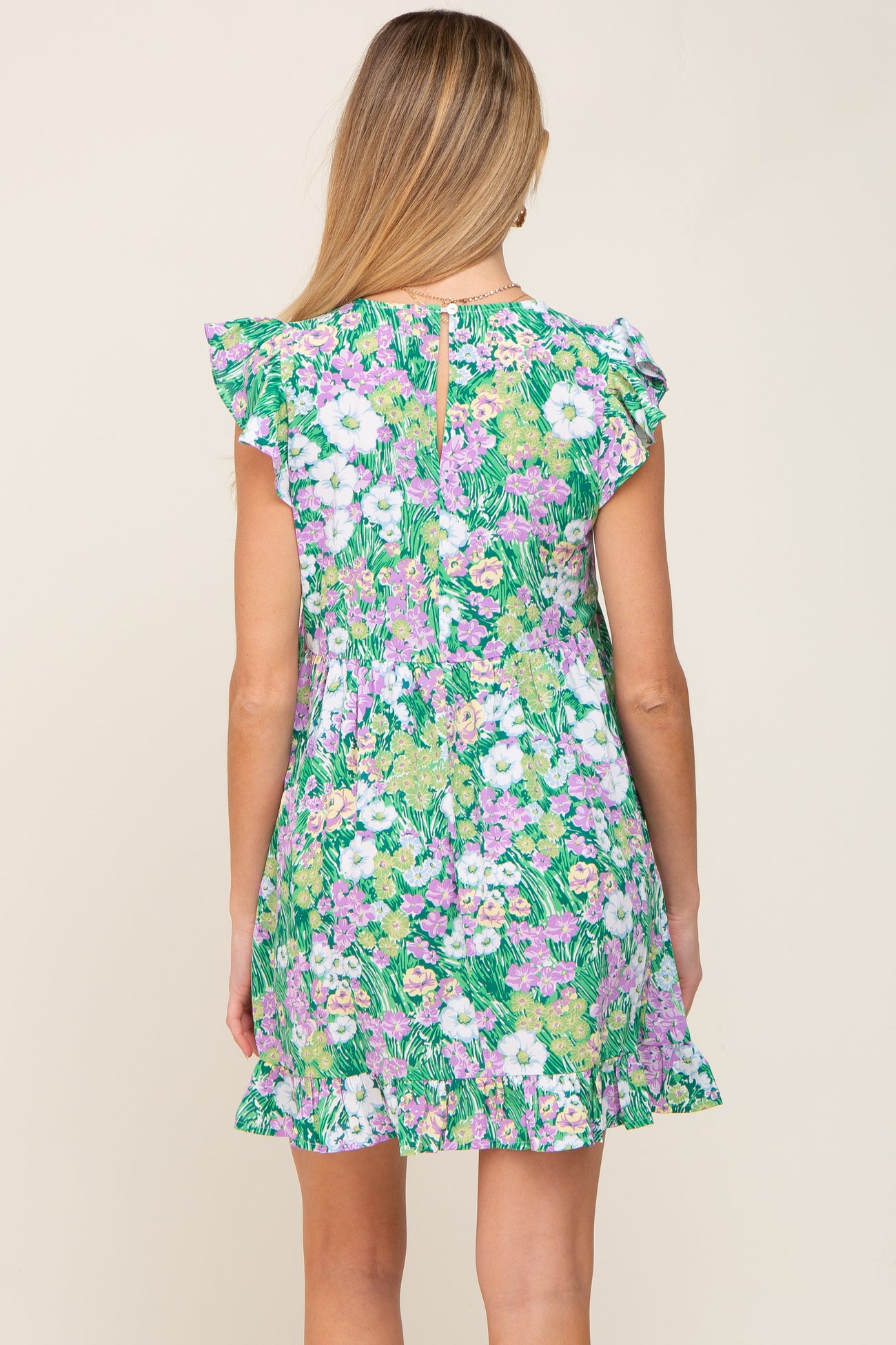 Green Floral Ruffle Sleeve Babydoll Maternity Dress