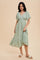 Green Floral Smocked Flutter Sleeve Midi Dress