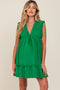 A floral maternity dress with a v-neckline, short dolman sleeves, and a lined skirt.