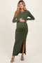 Green Floral V-Neck Ruffle Sleeve Maternity Midi Dress