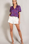 A palm printed maxi dress featuring a v-neckline, a front knot twist, a front cutout, adjustable cami straps, a smocked elastic back and a ruffle hem.
