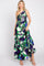 A printed maxi dress with a smocked top, a one shoulder neckline, and a tiered skirt. Skirt is partially lined.