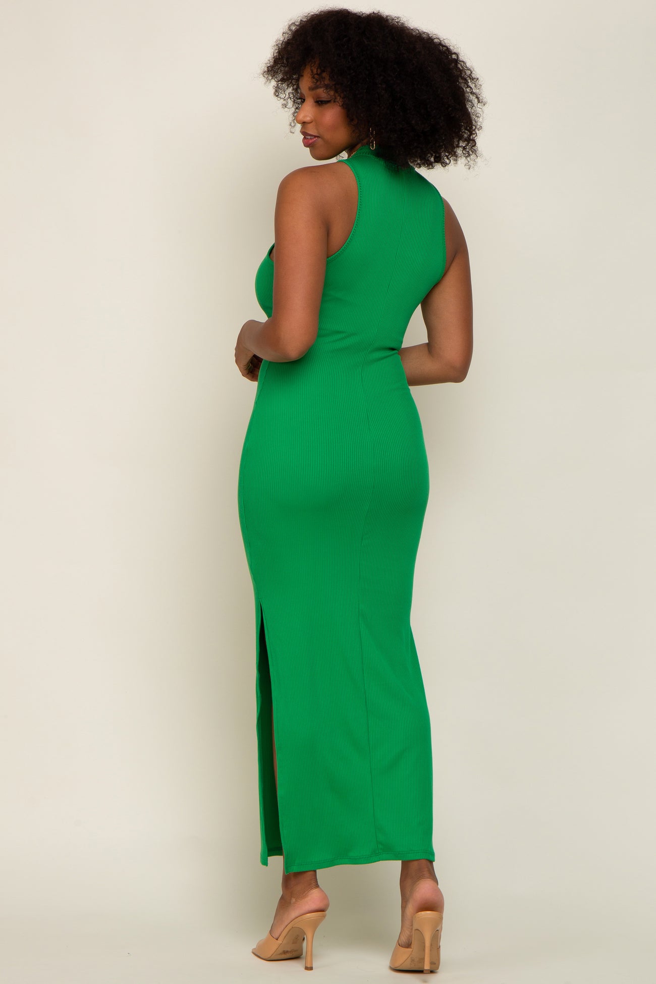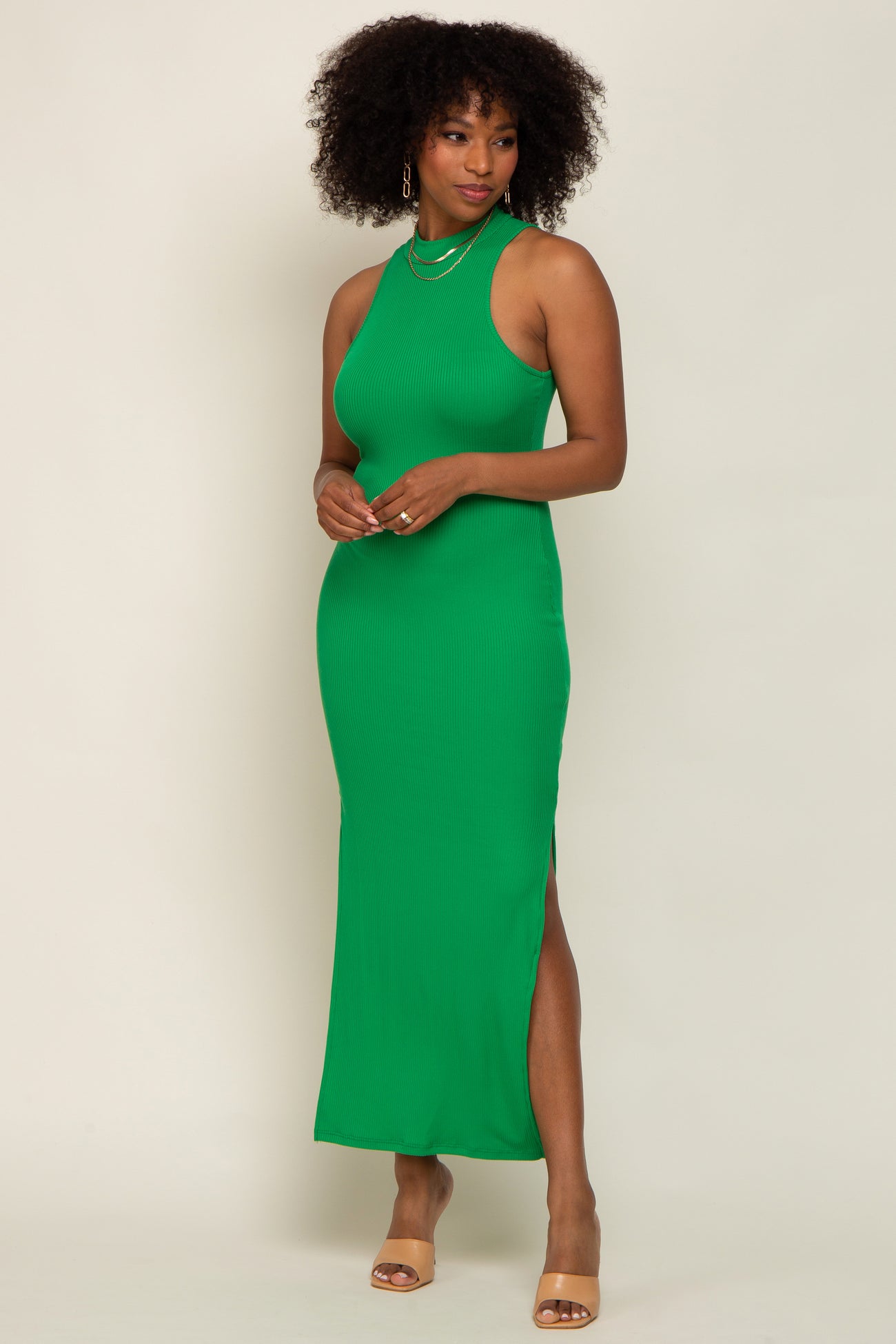 Details A solid ribbed sleeveless maxi dress featuring side slits and a rounded high neckline. Content + Care