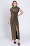 A sleeveless ribbed dress featuring adjustable cami straps, a side slit and a rounded neckline.