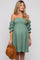 Green Smocked Off Shoulder Long Sleeve Maternity Dress