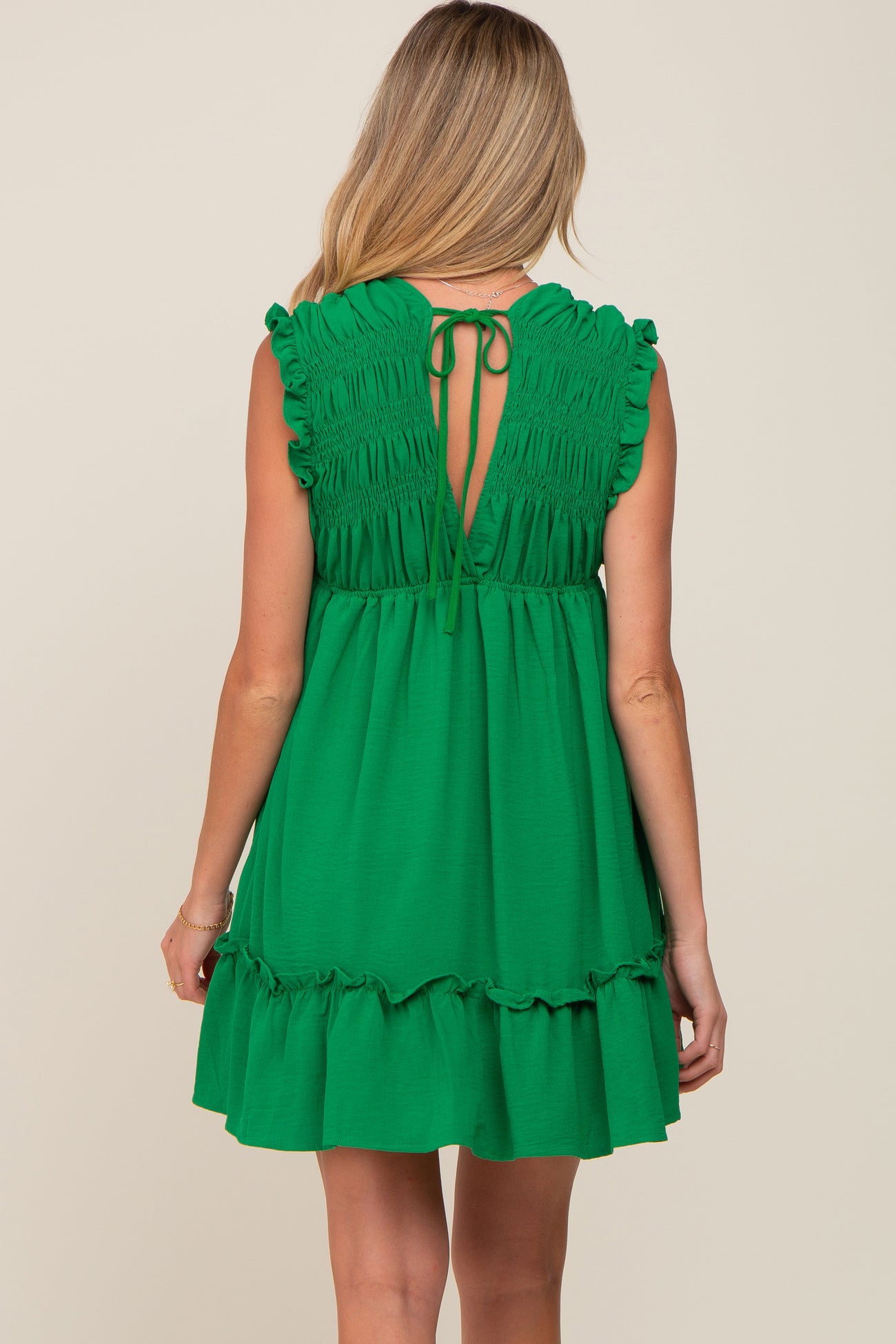 Green Smocked Ruffle Accent Maternity Dress