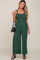 Green Smocked Square Neck Sleeveless Linen Maternity Jumpsuit