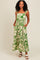 Green Tropical Floral Shoulder Tie Tiered Midi Dress