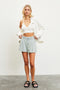 A top featuring a v-neckline and an exposed back seam.