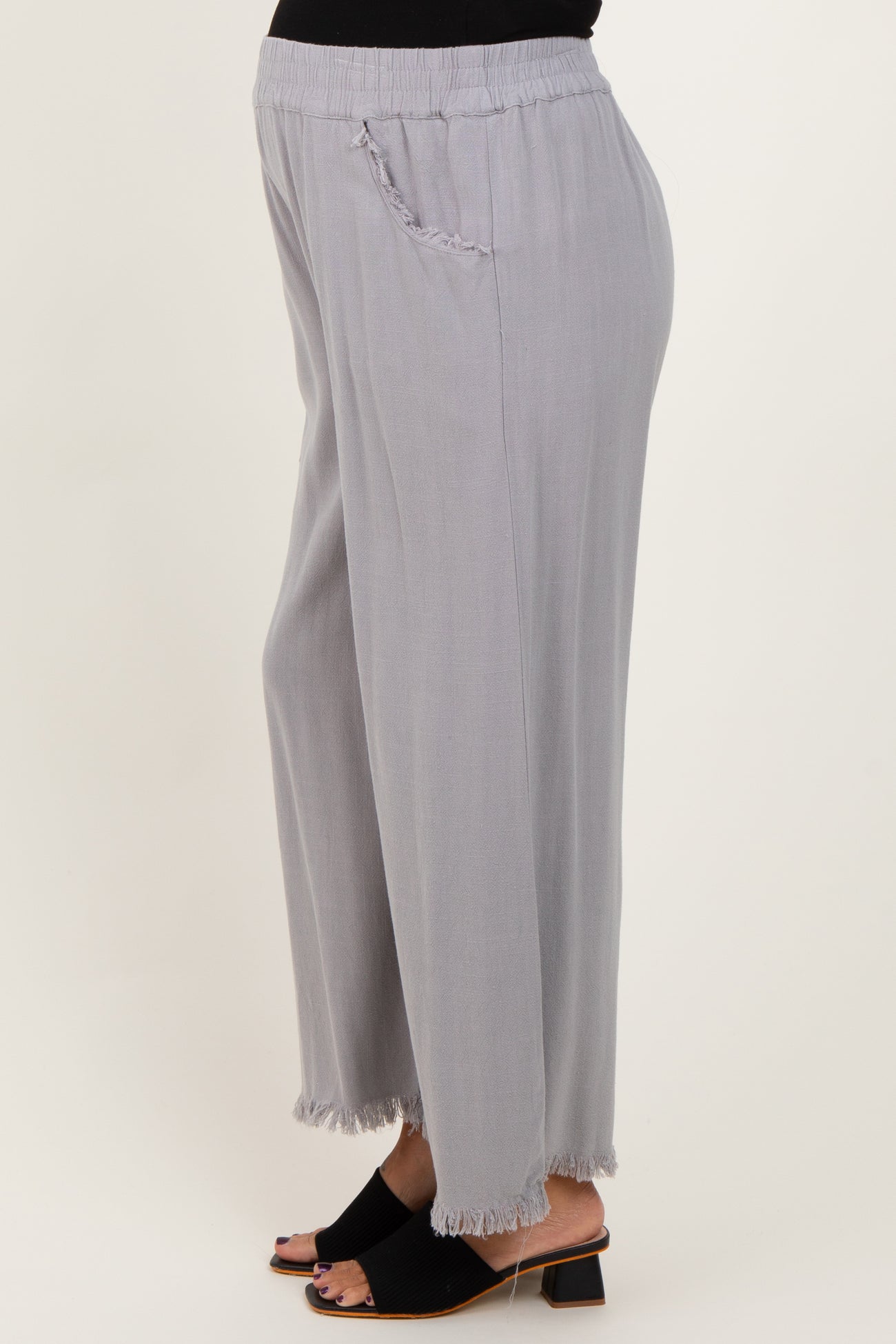 Grey Linen Frayed Hem Crop Maternity Pants