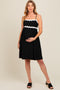 Grey Ribbed Short Sleeve Front Pocket Maternity Midi Dress