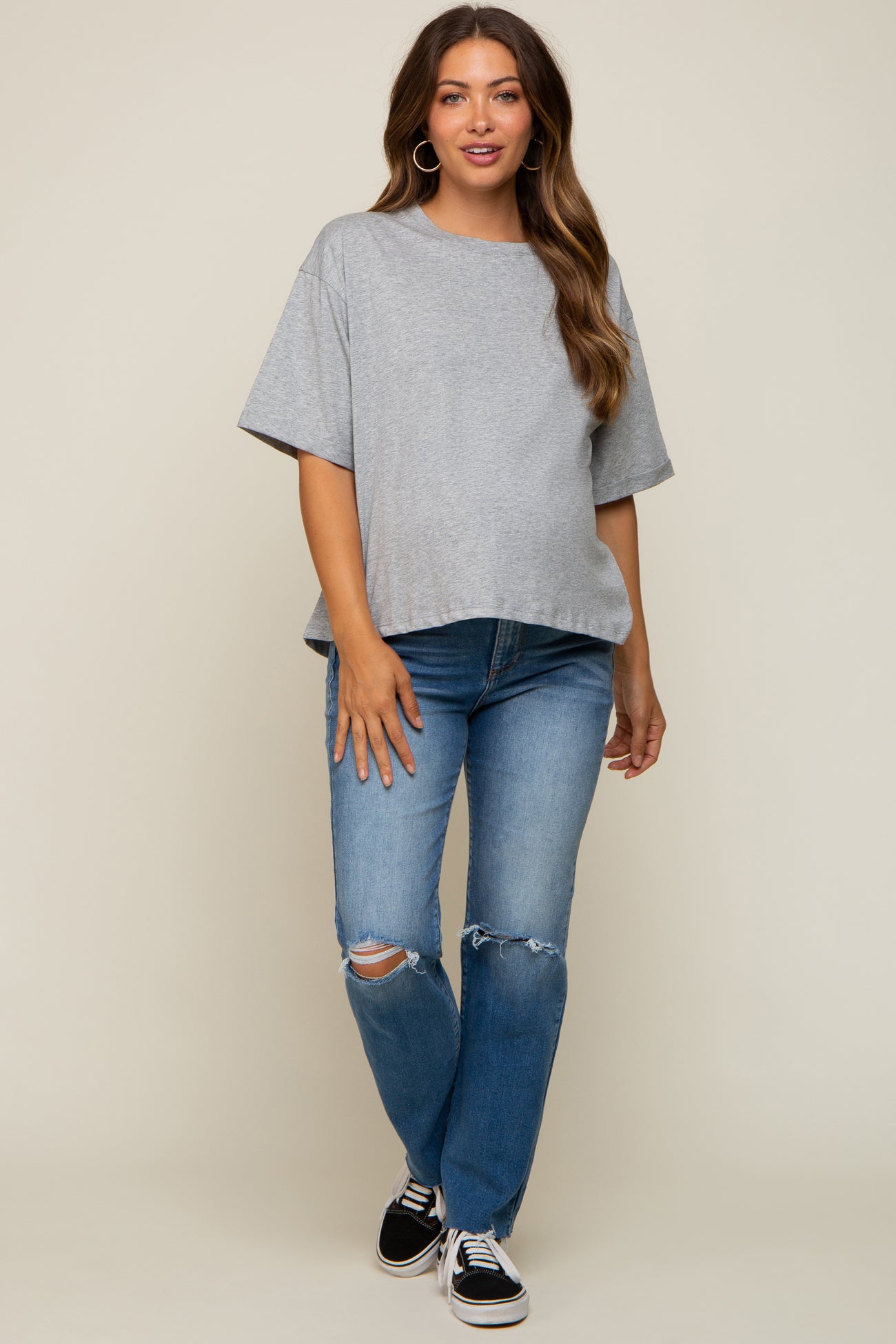 Heather Grey Basic Rolled Short Sleeve Maternity T-Shirt