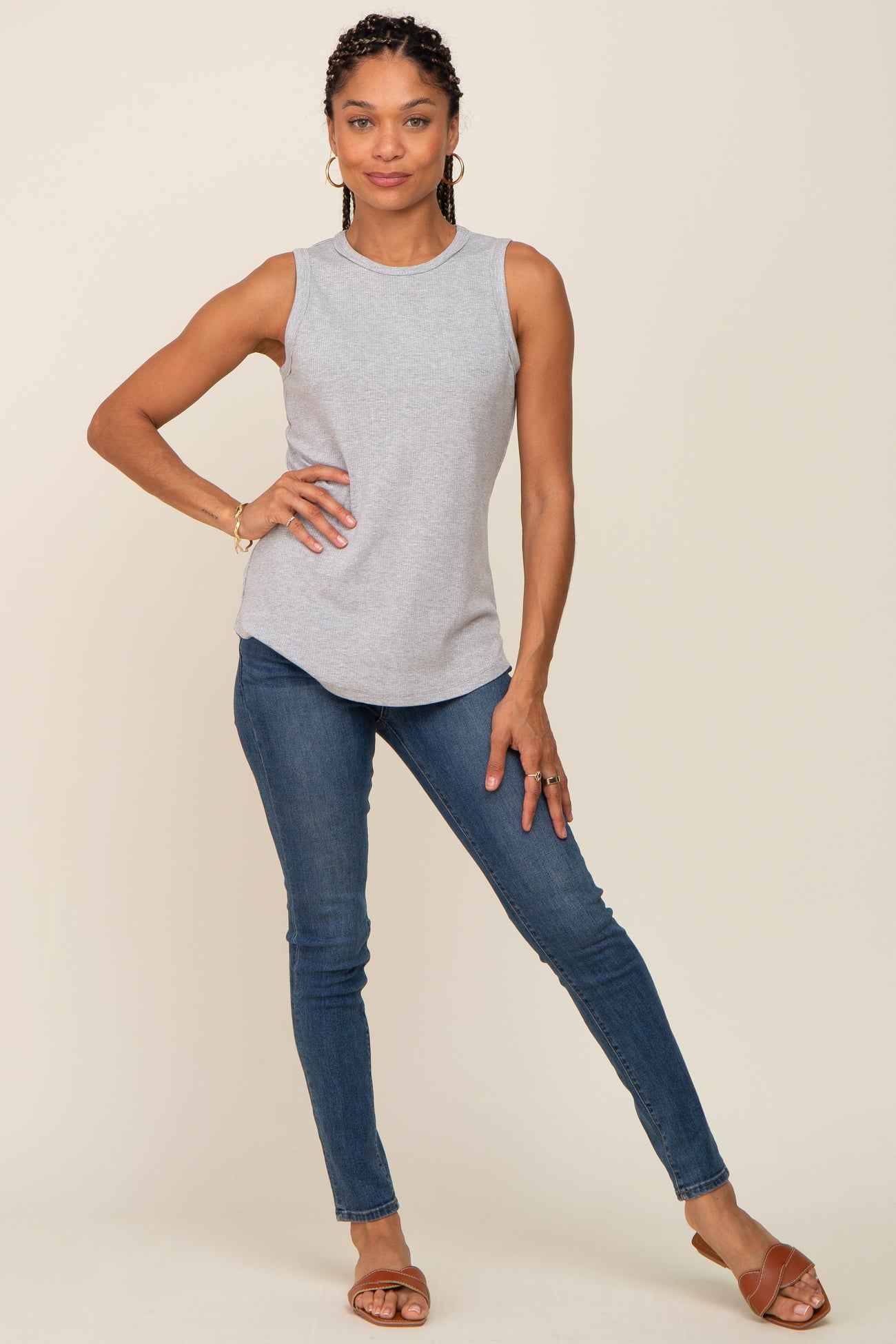A heavy ribbed knit top featuring a rounded neckline with raw edge trim and a rounded hem.