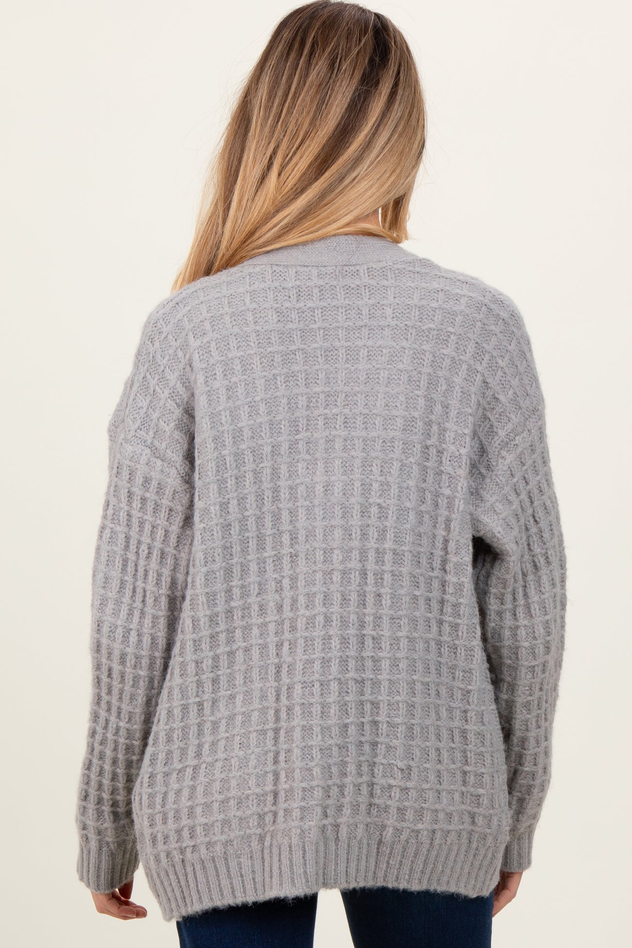 Heather Grey Waffle Knit Button Up Maternity Cardigan
