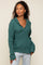 Hunter Green Ribbed Knit Collared Long Sleeve Top