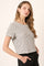 Ivory Black Striped Crinkle Knit Short Sleeve Crop Top