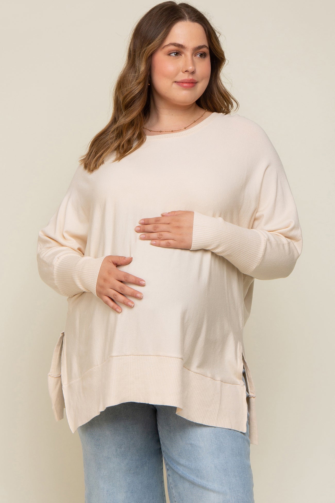 Ivory Dolman Sleeve Side Slit Maternity Plus Sweater