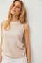 Details A semi sheer knit sleeveless top with a round neckline. Content + Care