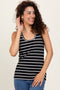 Ivory/Mocha Stripe Ribbed Ruffle Sleeve V-Neck Top