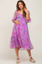 A printed maternity maxi dress with tie straps and a ruffle hem.