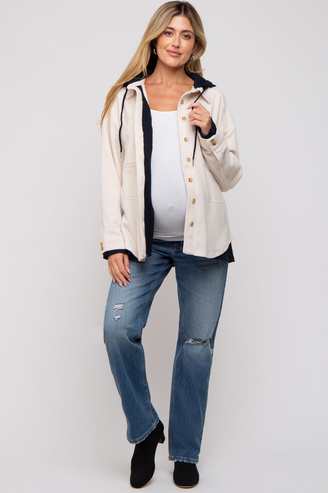 Ivory Soft Hooded Maternity Shacket