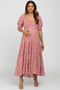 A striped fitted maternity midi dress featuring a self- tie adjustable side ruching, short sleeves and a rounded neckline.