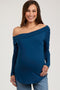 A striped ribbed maternity midi dress featuring a rounded neckline.