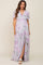 Lavender Floral Chiffon V-Neck Front Slit Short Sleeve Maternity Dress