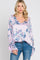 Lavender Floral Satin Ruffle Sleeve Blouse