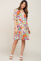 A floral print maternity mini skirt with an elastic waistband, a drawstring waist tie, side pockets and gathered tiers. Skirt is lined.