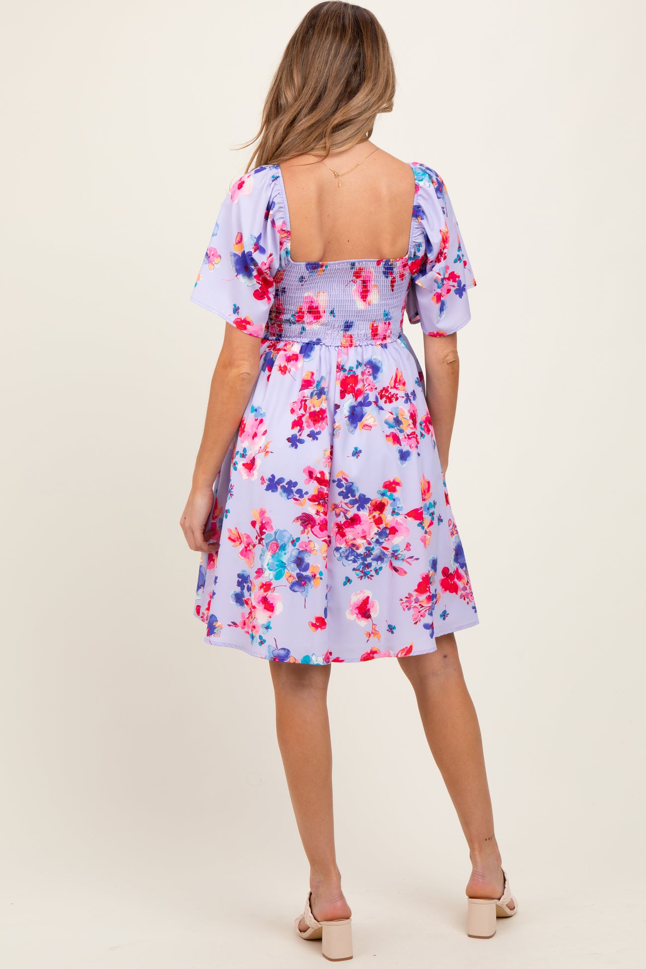 Lavender/Red Floral Smocked Top Maternity Mini Dress