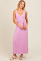 Lavender Ribbed Knit Long Sleeve Side Slit Midi Dress