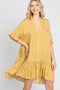A ribbed dress featuring a smocked bust, adjustable shoulder ties, and a gathered bottom tier.