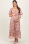 Lavender Tiered Ribbed 3/4 Sleeve Plus Midi Dress