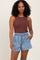 Light Blue Chambray Smocked Drawstring Waist Shorts