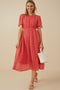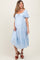 Light Blue Cinched Front Tie Puff Sleeve Maternity Midi Dress