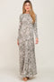 A lace mesh overlay maternity maxi dress featuring beautiful scalloped trim, semi-sheer short bell sleeves and back, a v-neckline, and a hook and hidden zipper back closure. Back, bust and skirt are double lined to prevent sheerness.