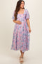 Light Blue Linen Dolman Half Sleeve Button Down Maternity Top