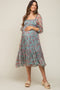 Light Blue Printed Sleeveless Tiered Cutout Back Maternity Maxi Dress
