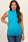 Light Blue Ribbed Mock Neck Ruched Side Sleeveless Maternity Top