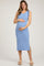 Light Blue Ribbed Ruffle Shoulder Side Slit Maternity Midi Dress
