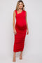 A ribbed knit maternity romper featuring a v-neckline and cami straps.
